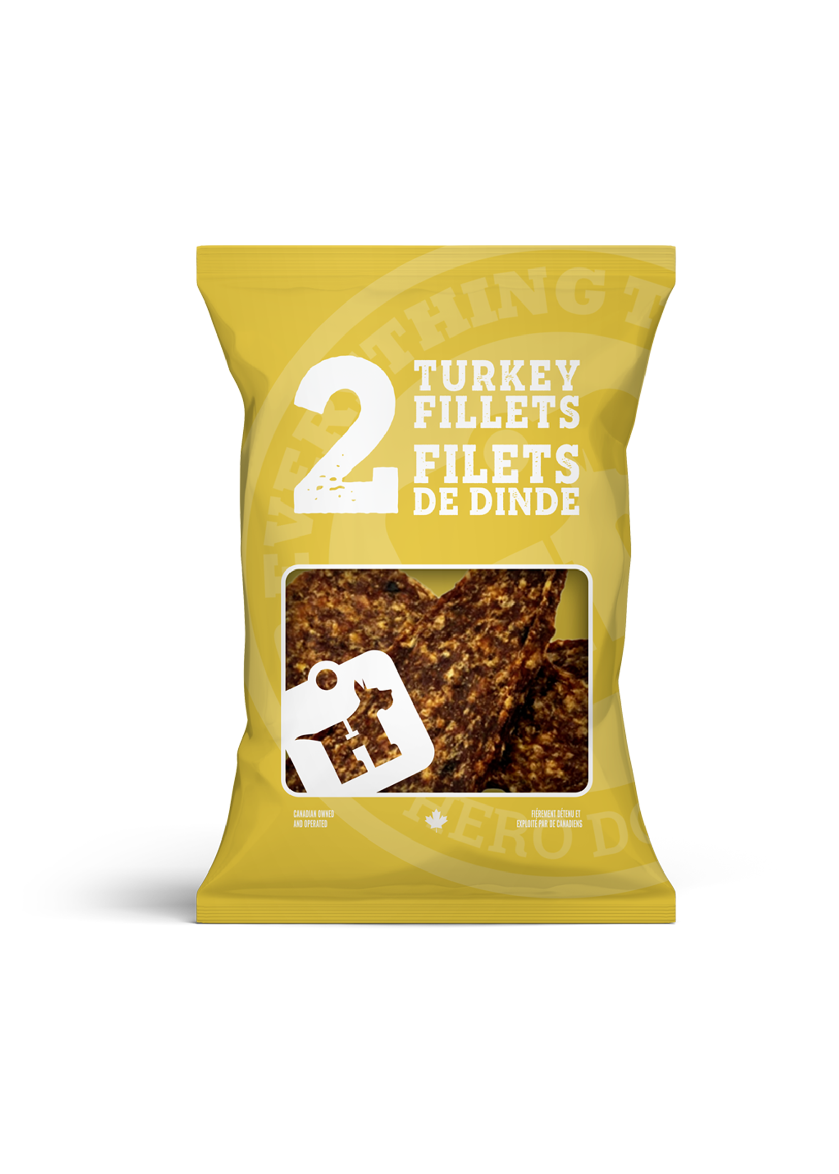 Les filets de dinde Hero Dog Treats sont sans céréales ni gluten. Idéal pour le système digestif, très riche en protéines et faible en gras.
