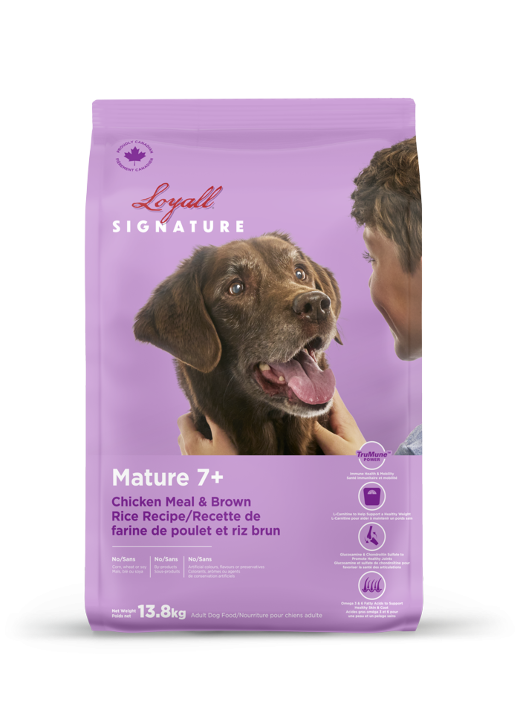 Farine de sous-produits de poulet, gruau d’avoine, riz de brasserie, maïs entier moulu, farine de gluten de maïs, graisse de poulet (mélange de tocophérols et d’acide citrique comme agent de conservation), pulpe de betterave séchée, graines de lin entières, glucosamine hydrochloride, saveur naturelle de poulet, levure de brasserie séchée, chlorure de potassium, carbonate de calcium, propionate de calcium (agent de conservation), sel, vitamines (supplément de vitamine E, supplément de vitamine A, supplément de vitamine D3, supplément de vitamine B12, supplément de niacine, supplément de riboflavine, pantothénate de calcium, hydrochloride de pyridoxine, biotine, mononitrate de thiamine, complexe bisulfitique sodé de la ménadione (source d’activité de vitamine K), acide folique), minéraux (complexe d’acides aminés de zinc, sulfate ferreux, sulfate de zinc, complexe d’acide aminés ferreux, sulfate de cuivre, complexe d’acides aminés - manganèse, sulfate manganeux, dihydroïodure d’éthylènediamine, sélénite de sodium), mannane-oligosaccharides (MOS), fructo-oligosaccharides (FOS), acides organiques (malique, fumarique, lactique, citrique), extrait de romarin, extrait de thym.